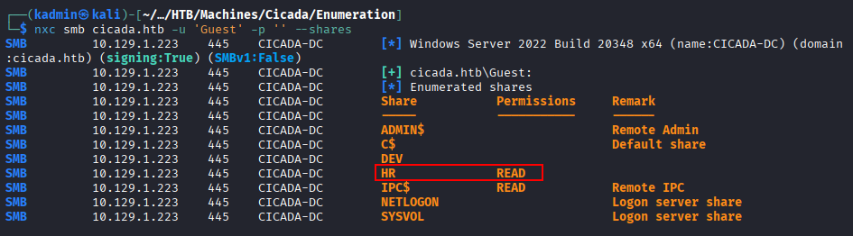 nxc smb cicada.htb -u 'Guest' -p '' --shares