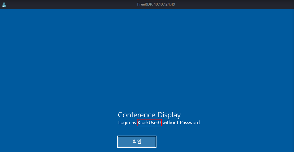 Upon accessing the Windows login screen, a message revealed that the host functions as a Conference Display and that a user named ‘KioskUser0’ can access the system without a password.