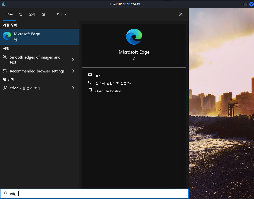 By pressing the Windows key and typing directly, the search interface was displayed, which allowed msedge.exe (Microsoft Edge) to be launched.