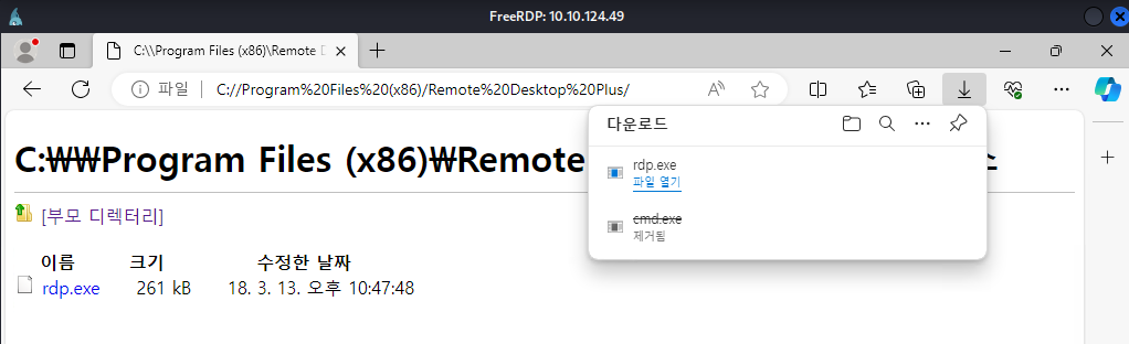 The current user was restricted to accessing files located in the Downloads directory via File Explorer. Therefore, the Remote Desktop Plus executable was downloaded through Microsoft Edge and saved to the Downloads directory.