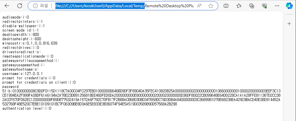 After further investigation, it was determined that the application temporarily writes encrypted .rdp credential files to the %LOCALAPPDATA%\Temp directory. These files are created by Remote Desktop Plus during connection attempts and encrypted using the current user’s Data Protection API (DPAPI) context.
