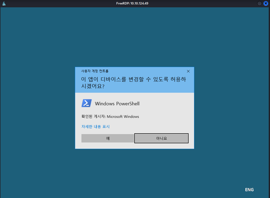 To escalate privileges, the following command was simply executed, which starts a new instance of PowerShell requesting elevation via UAC (-Verb runas), thereby displaying a prompt to run the process as an administrator if the user has the appropriate permissions.