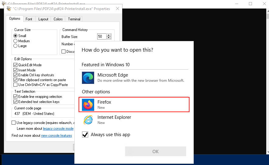 Next, the following command was executed to initiate the repair process of PDF24 Creator and trigger the vulnerable MSI installer behavior: